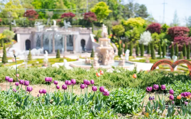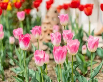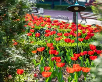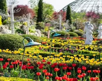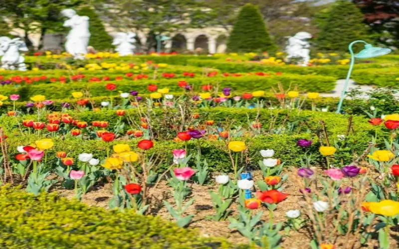- 4월 3~4주 차 : 자수화단과 벽천분수, 다양한 색상의 튤립으로 수놓은 정원 산책